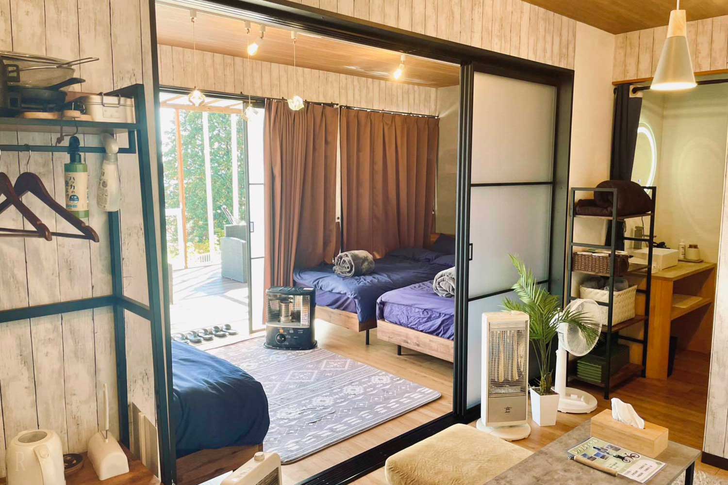 眼下に広がる森を見渡しながら、広々としたコンテナハウスでグランピングをお楽しみいただけます。